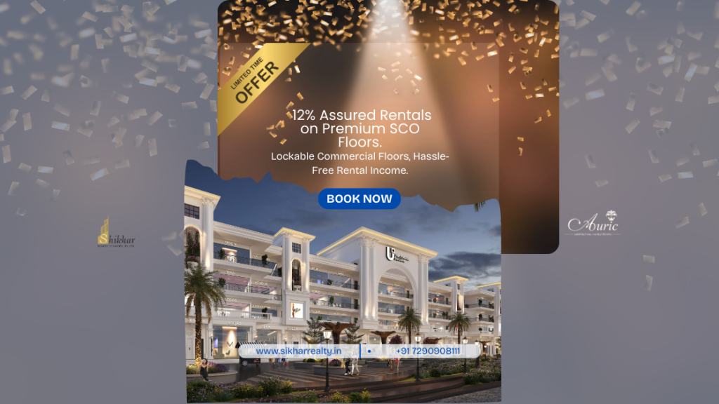 Auric Universal Square commercial SCO floors in Faridabad – premium investment opportunity with assured rentals, modern retail and office spaces, and long-term growth potential by Shikhar Realty Services.